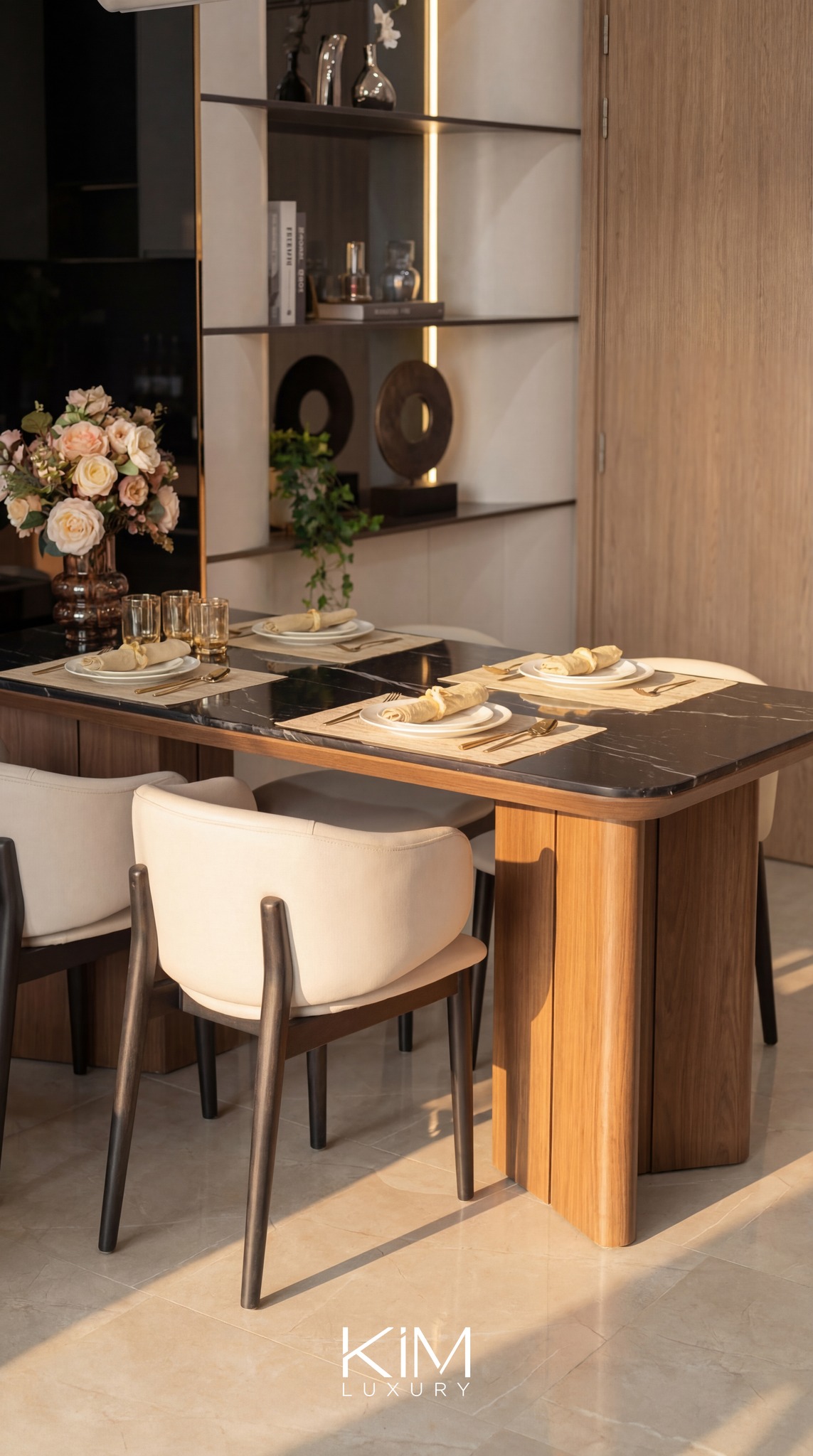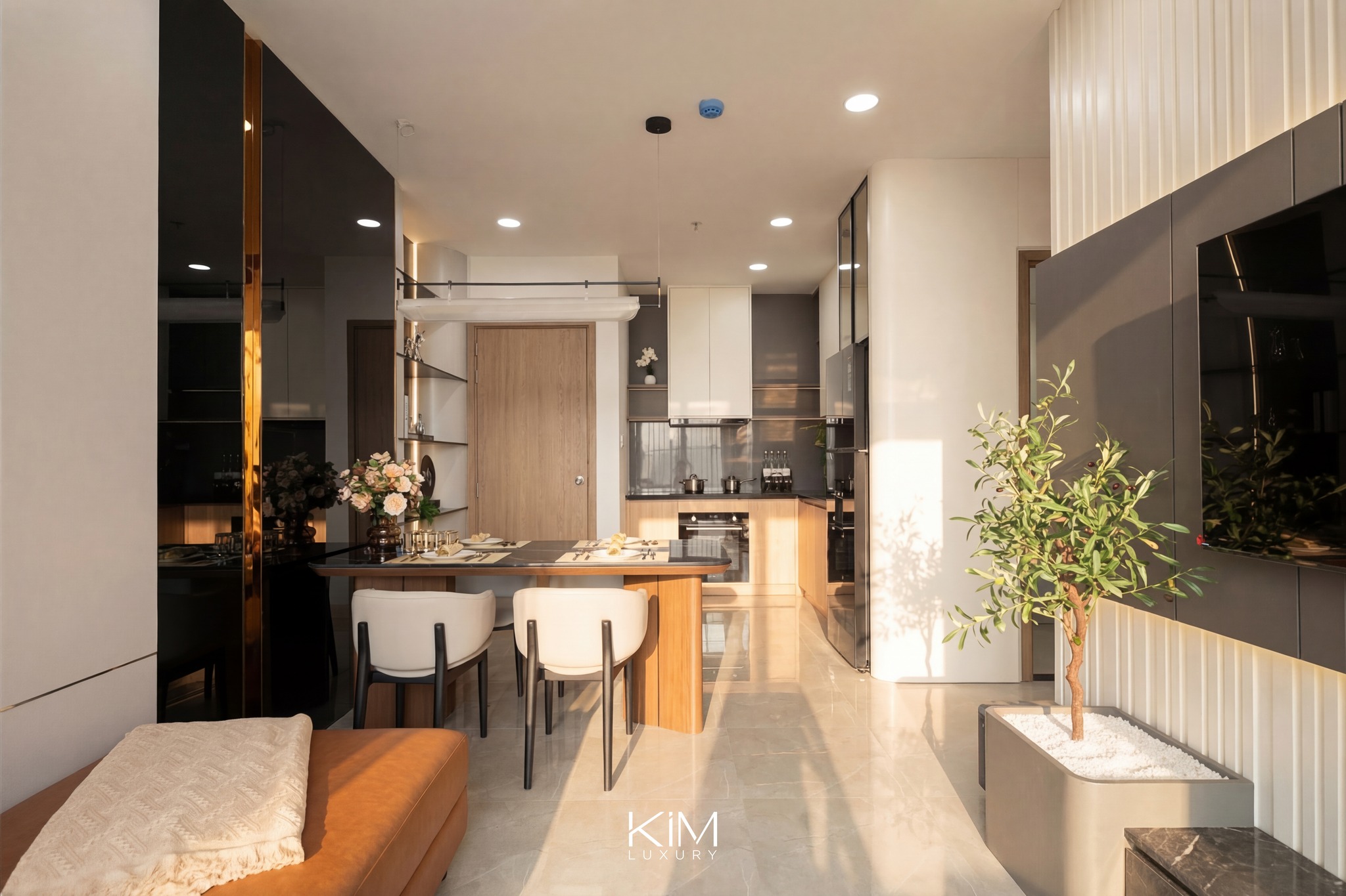 Toàn bộ công trình được Kim Luxury chăm chút từ bố cục không gian, ánh sáng, vật liệu cho đến từng chi tiết nội thất, tạo nên một tổng thể hài hòa giữa thẩm mỹ, công năng và trải nghiệm sống.