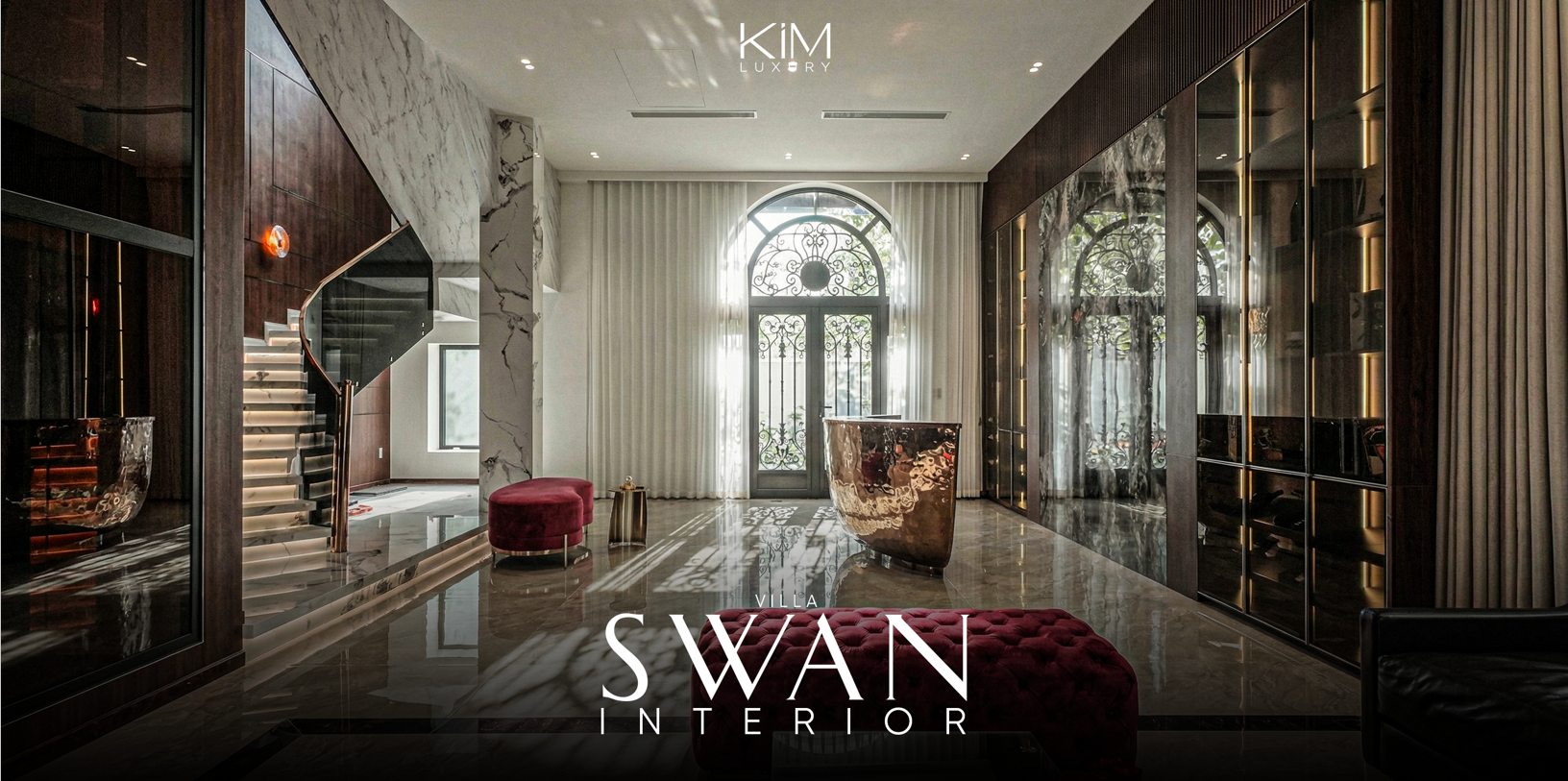 Không gian nội thất tại Swan Villa được định hình bởi tinh thần Luxury hiện đại pha lẫn nét kiêu sa của Tân cổ điển, nơi vật liệu cao cấp và nghệ thuật ánh sáng đóng vai trò ngôn ngữ chủ đạo.